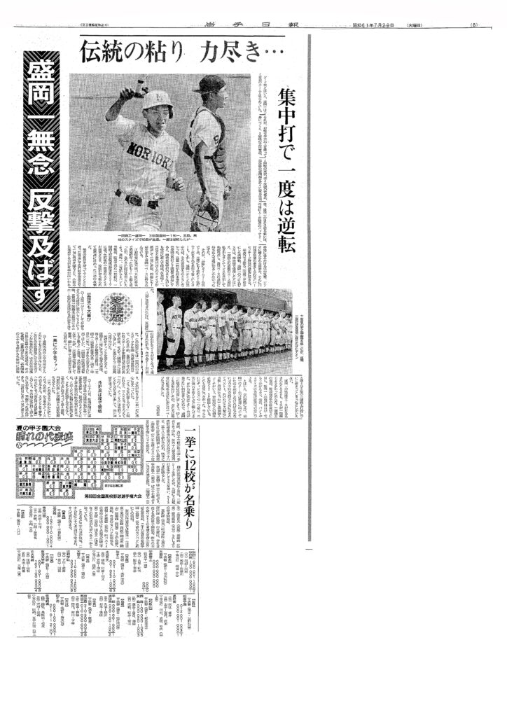 「岩手日報昭和61年7月29日付」「この記事は岩手日報社の許諾を得て転載しています」