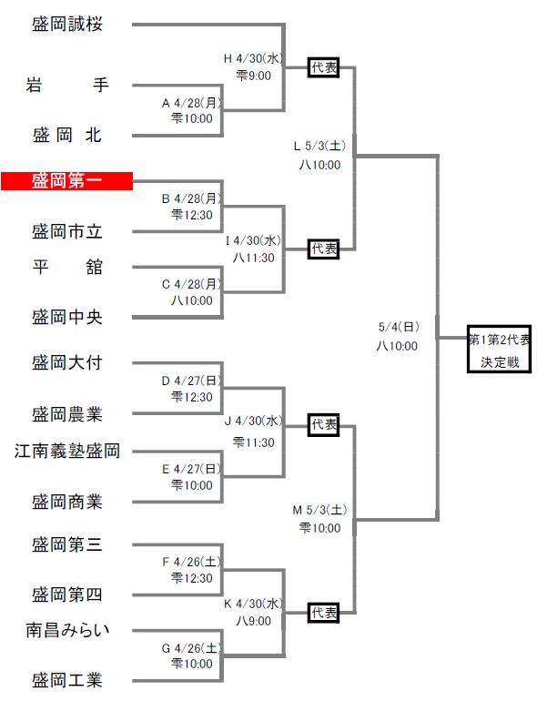 第72回春季東北地区高校野球 盛岡地区予選組み合わせ